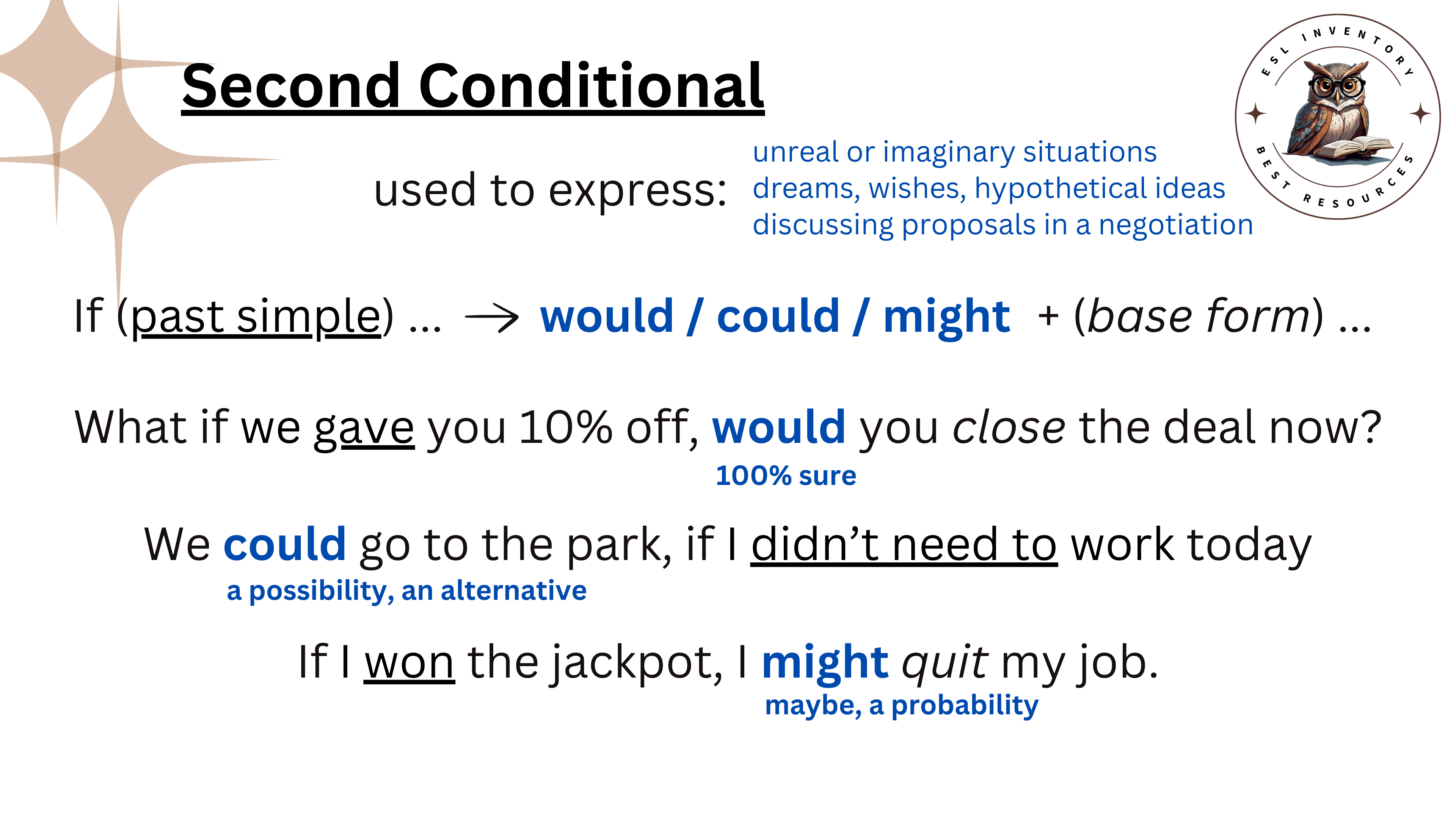 Not sure how to speak about hypothesis and express your imagination? Well, the second conditional is the answer. It talks about imaginary, unreal, or unlikely situations in the present or future. It often expresses dreams, advice, or hypothetical situations. Read the article below and try the exercises at the end.